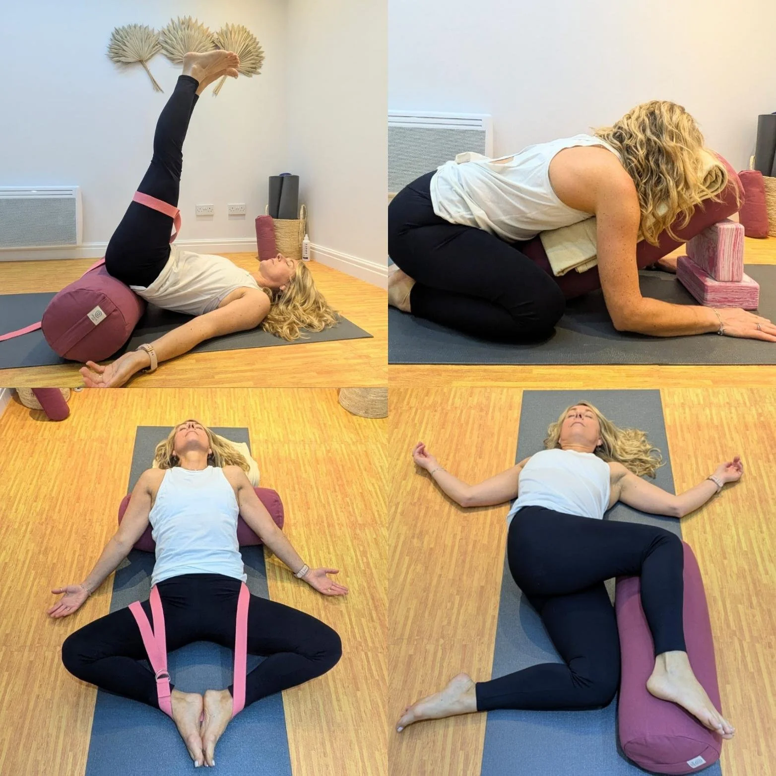 • reconnect and focus on relaxation in a safe, warm space being completely supported, using props and holding poses for a little longer, to feel centred and shift the nervous system to balance.